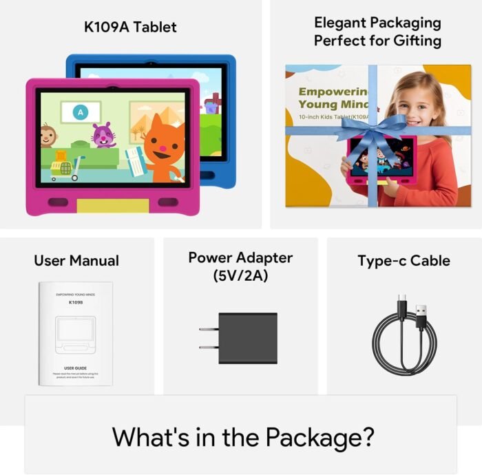 Ideal Gift + 1-Year Warranty: Searching for the perfect gift for birthdays or special occasions? The K109A tablet is a great choice for combining fun and learning. Backed by a 1-year warranty and a 30-day return policy, this tablet guarantees satisfaction and peace of mind.