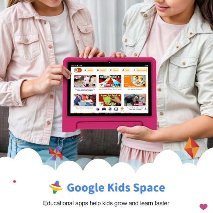 Contents Kids Love — Preloaded with Google Kids Space, teacher-approved learning apps, thousands of ad-free books, educational games, videos, audiobooks, music stations, and more. Interactive apps develop their creativity, while shows, books, and more satisfy their curiosity.
