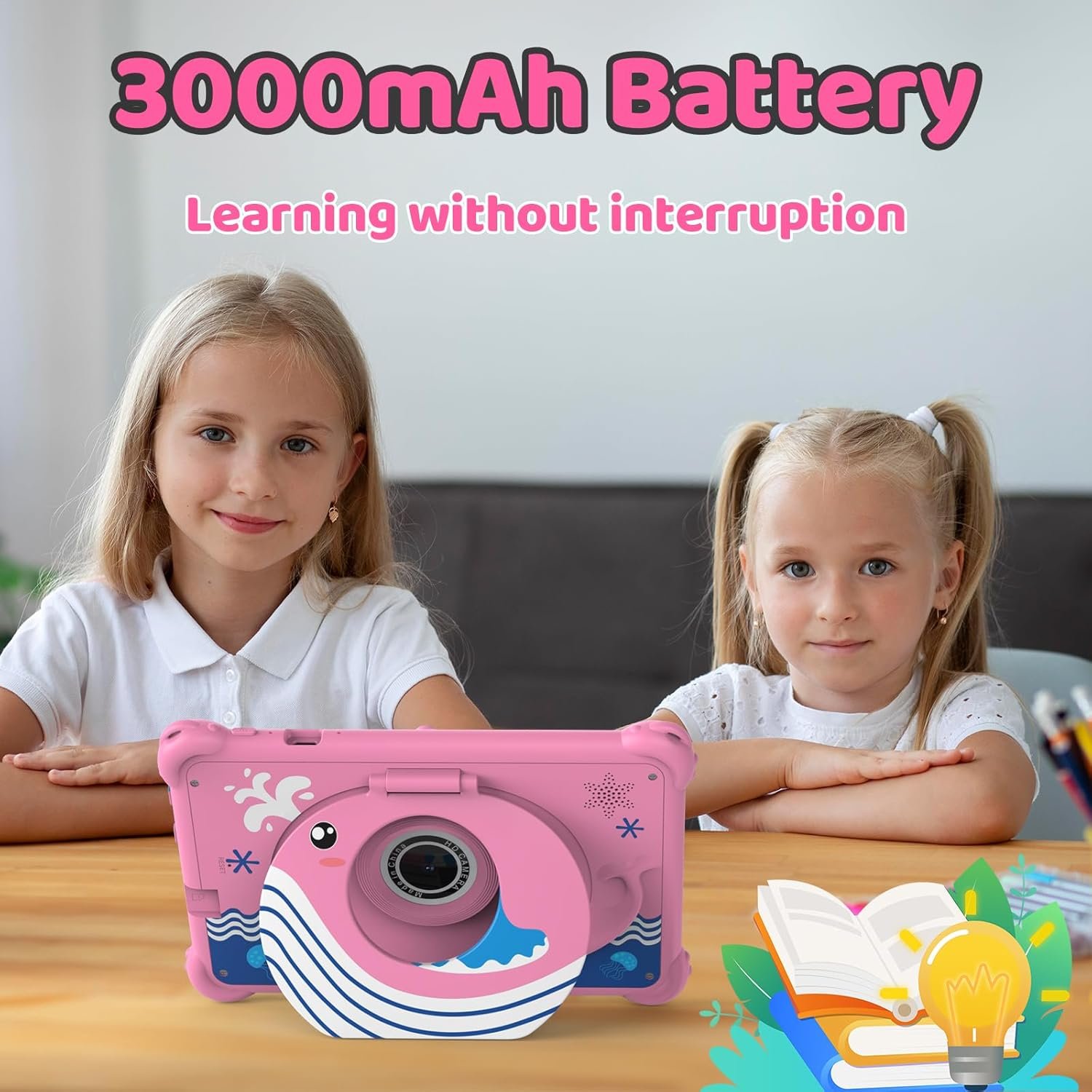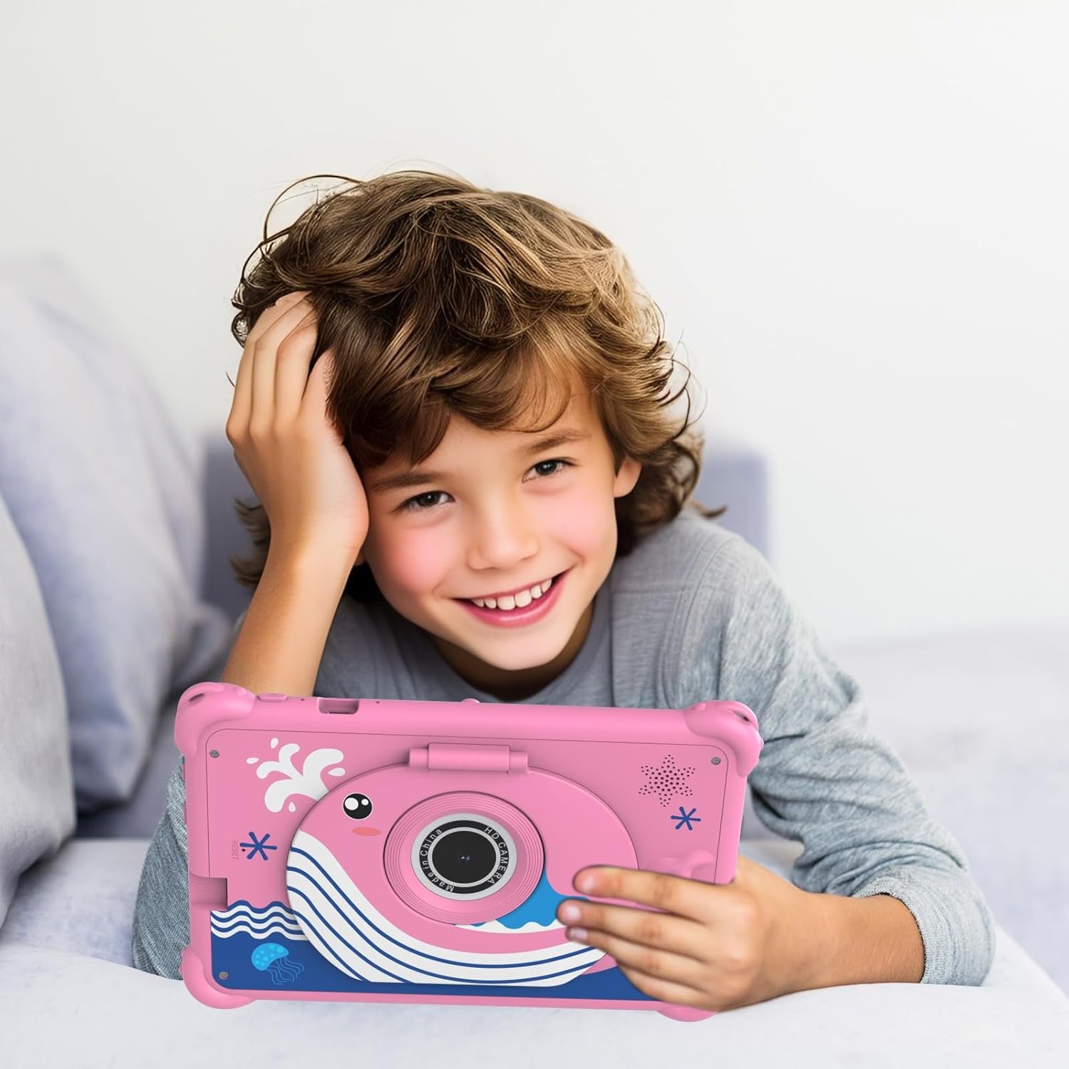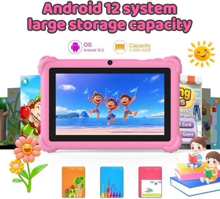 Kids Tablet 7 inch Android 12.0 Toddler Edition, IPS Screen, 4GB RAM 32GB ROM, Bluetooth, Parental Controls, Dual Camera, Fine Case for Educational Gaming.
