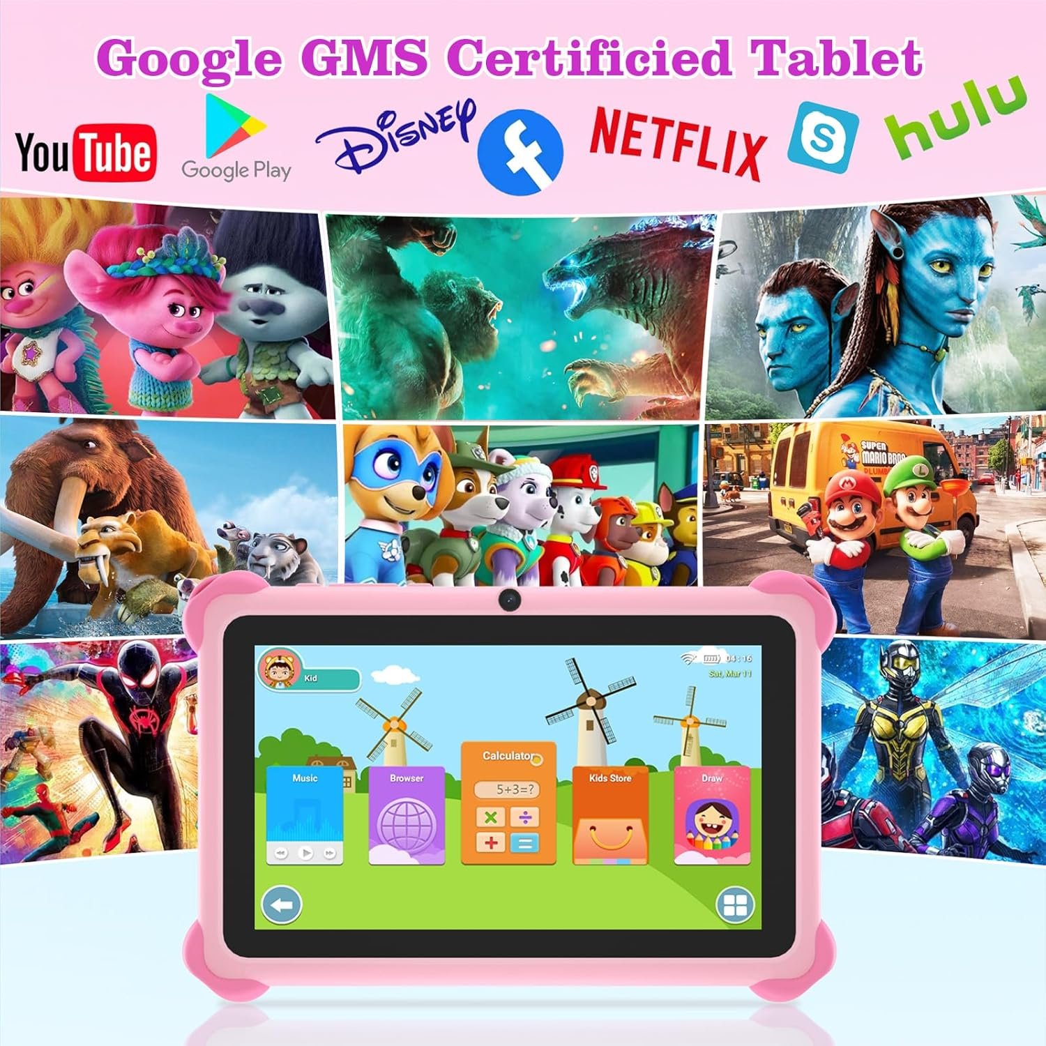 Kids Tablet, 7 inch Toddler Tablet for Kids, 32GB Toddler Tablet, Tablets for Kids with Case Included, Parental Control, Dual Camera, GMS, WiFi (Pink)