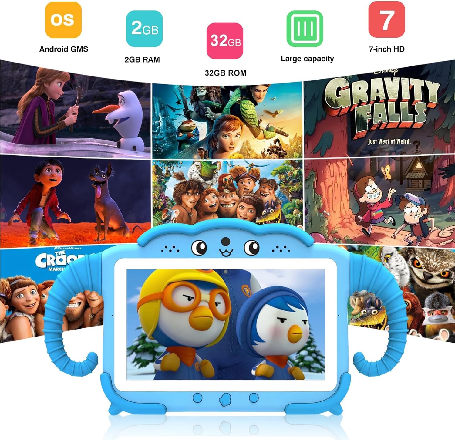 Kids Tablet 7IN Tablet for Kids 3-7 Toddler Tablet, Tablet for Toddler Learning Tablet Kids 32GB with Educational Games, GMS, Parent Controls, WiFi Kids Learning Tablet Toddler Boy Girl (Blue)