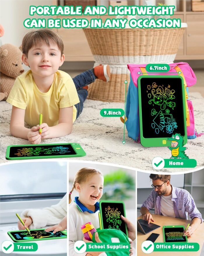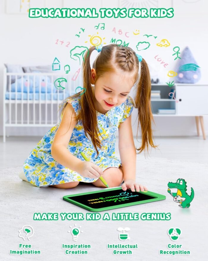 KOKODI LCD Writing Tablet for Kids, 10 Inch Colorful Drawing Tablet, Educational Learning Kids Toys for Age 3-12 Years Old, Toddler Doodle Board,Green