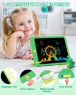 One-Click Clear and Lock: This drawing tablet features a one-click erase button that eliminates the need for manual erasing, adding convenience and allowing your child to start a new doodle with just one click. Erasable writing pad also has a locking function, slide the lock switch at the bottom of the drawing board, prevent accidental erasure and protect your child’s creations