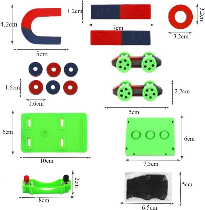 【Enhance children’s Scientific Knowledge】 The electricity and magnetism kit contains a list of experiments, according to which students can approach physics step by step, and complete different experiments from easy to difficult,such as magnetic trolley, compass experiment, magnetic field discovery, magnetic levitation experiment, electromagnet experiment, etc.