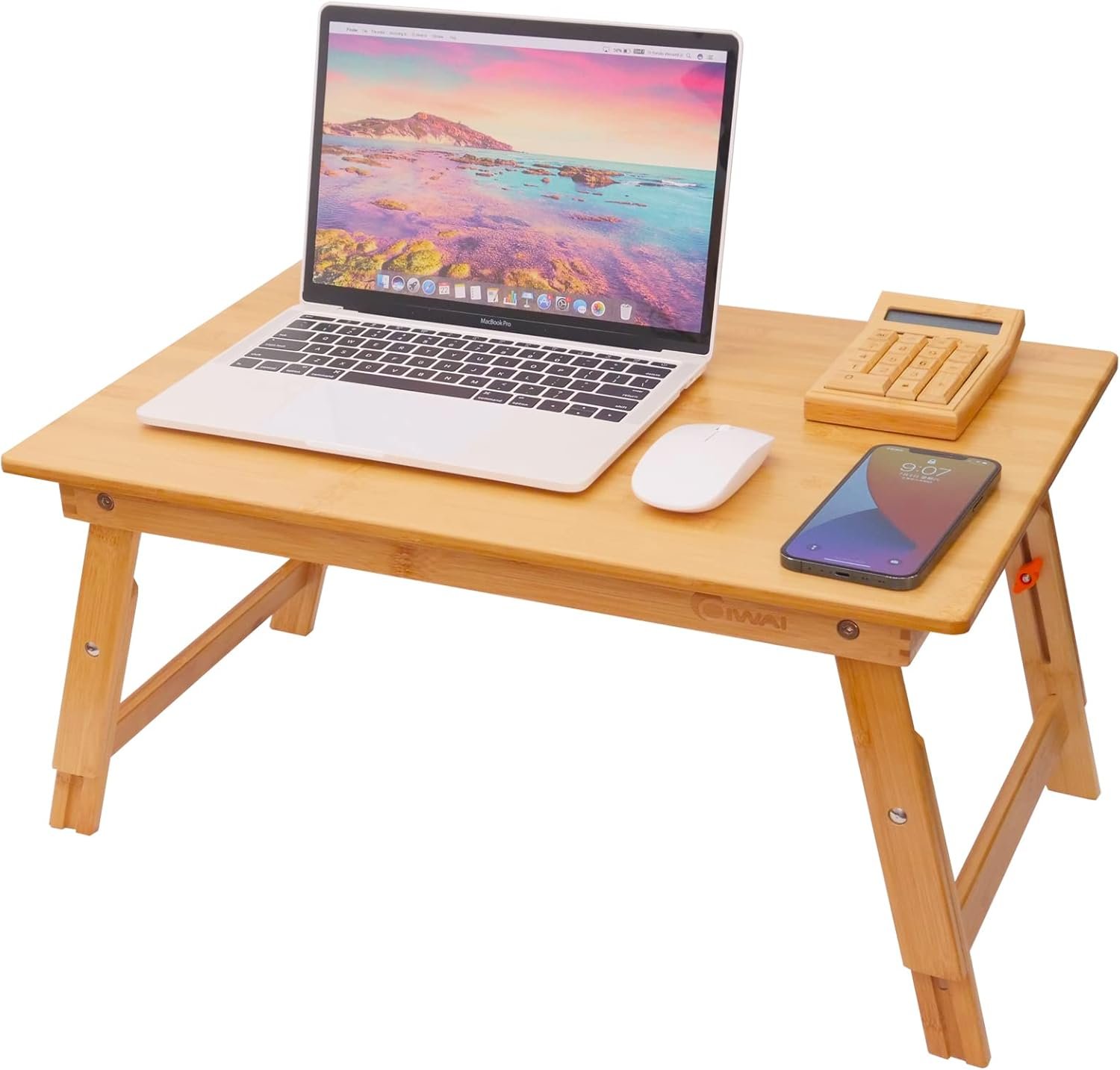 Lap Desk for Bed, COIWAI Bamboo Bed Table tary, Laptop Desk Table, Foldable Floor Tray Bed Desk,Adjustable Height, Portable Foldable Picnic Desk,Serving Breakfast Tea Coffee in Bed Couch Floor