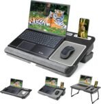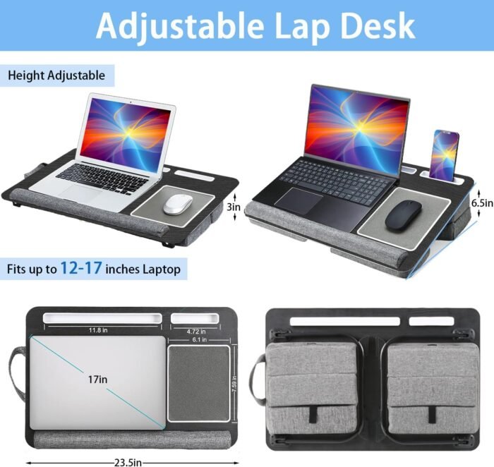 Lap Desk for Laptop with Cushion, Adjustable Laptop Desk for Bed Couch – Fits up to 17″ Laptop, Foldable Computer Tray Table for Adults, with Tablet & Phone Holder,Mouse Pad & Wrist Rest