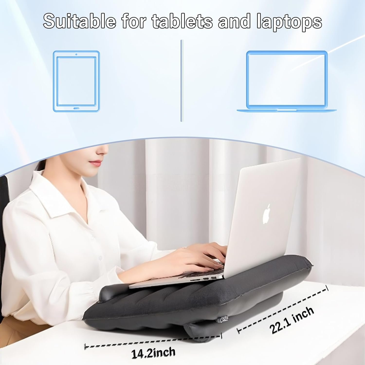 [Suitable for Large-size Laptops] The inflatable laptop table is designed for large size laptops and can hold up to 15.6 inches laptops and comes with non-slip hand cushions to prevent laptops from slipping off.