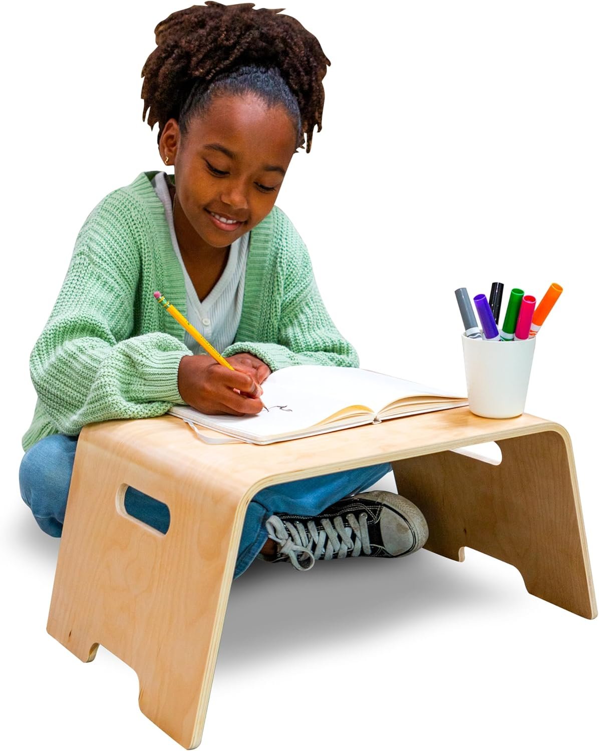 Elevate your child’s learning and creativity with our Bentwood Floor Lap Desk, a must-have for every home. Crafted from real birch wood, its natural color exudes timeless elegance while ensuring durability that lasts for years. Portable and equipped with convenient handles, this desk is effortlessly transportable, making it perfect for classrooms, homeschools, playrooms, and beyond. The rounded edges prioritize safety, allowing kids to dive into various activities with peace of mind. From homework to arts, crafts, drawing, painting, or even snack time, this versatile desk accommodates every endeavor. Encourage exploration and unleash imagination with a space that’s not just functional, but also fun and inspiring. Make the Bentwood Floor Lap Desk an essential addition to your home, where every moment becomes a learning opportunity and creativity knows no bounds.