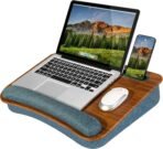 LAPGEAR Portable Laptop Lap Desk with Pillow Cushion, Anti-Slip Strip, Tablet or Phone Storage Slot, Pen and Pencil Pocket, and Wrist Rest – Espresso Woodgrain – Fits 17.3″ Laptops – Style No. 91342