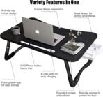 With Cup Holder & Storage Drawer: Foldable lap desk comes with a table cup holder, the depth is 3.5 cm. You can put your favorite drink in it without worrying about spilling. Additional,laptop bed table built-in a storage drawer that can help you keep many small useful items.This multifunctional lap table will be a perfect addition to your office or home.