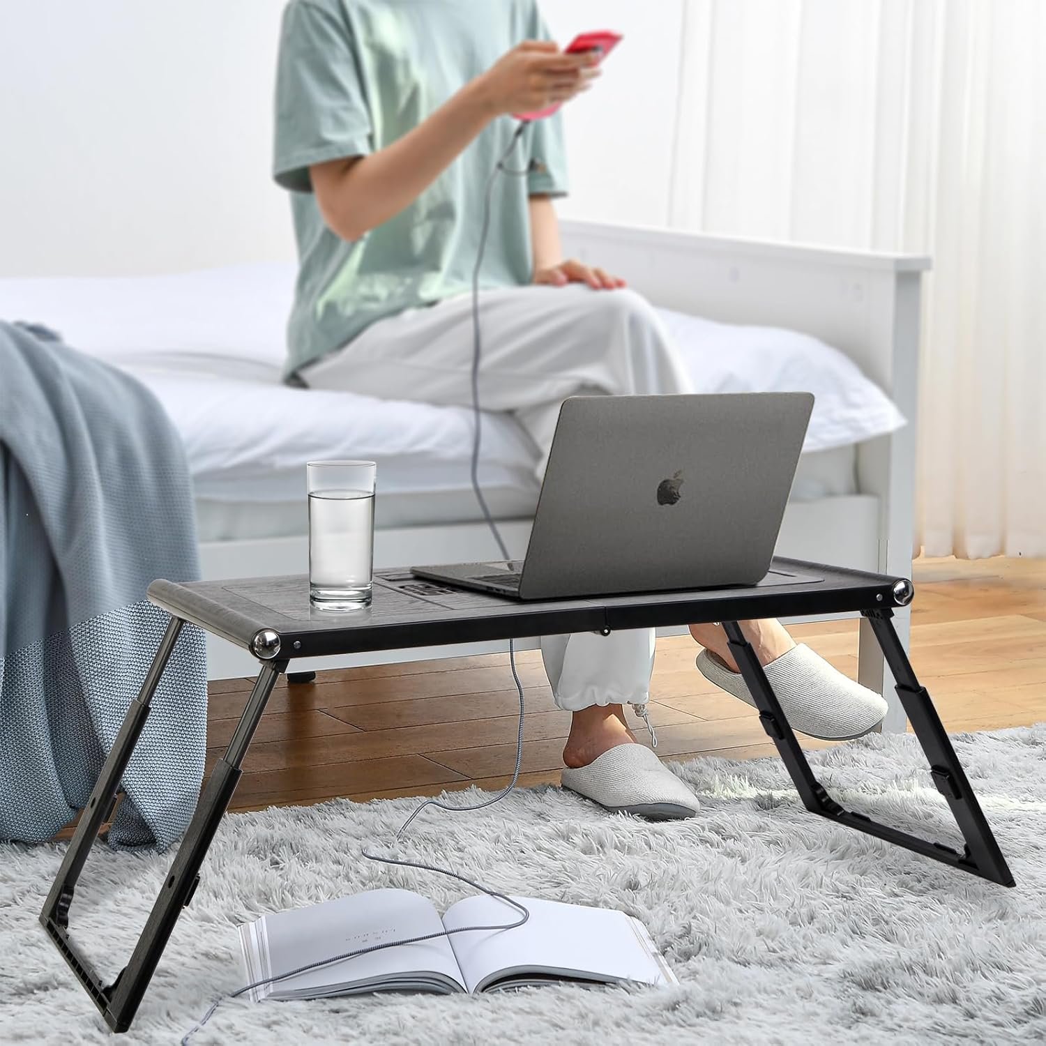 Laptop Bed Table with Cooling Fans – Tablet Clamp – Adjustable Height – Foldable Design – Versatile Lap Desk for Work, Study, Leisure – Ideal for Laptops up to 15.6 in