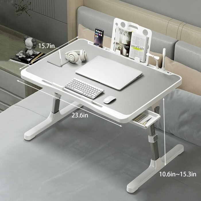 FOLDABLE LAPTOP DESK FOR BED: Light but sturdy, the adjustable laptop bed table can be fold flat for space-saving storage, When not needed, it can be stored under a couch, sofa and bed easily.