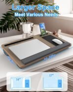 HETTHI Lap Desk with cushion with enough room for a 17-inch laptop and mouse, built-in wrist rest and upholstered bottom so you can work or use for long hours without discomfort. Its lightweight, portable design is suitable for students, professionals and busy individuals.