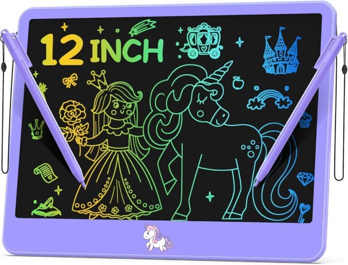 12 Inch Large Size Educational Kids Toys: The lcd drawing tablet provides a 12inch large colorful screen for your children to unleash their imagination to draw, write, spell, count, play games and all kinds of creative fun, Ant the lcd writing tablet for kids comes with 2 pens so it’s twice the fun. The pens come with strings to attach to the doodle board so you don’t lose them. Hockvill writing tablet brings better painting, preschool, and home learning experiences with high-quality family time! You can also use the drawing pads as a memo board, drawing pad, and Magna erasable doodle pad. (What’s in the box:1×12″ LCD Writing Tablet, 2xStylus, 2xAnti-lose Strings, User Manual)