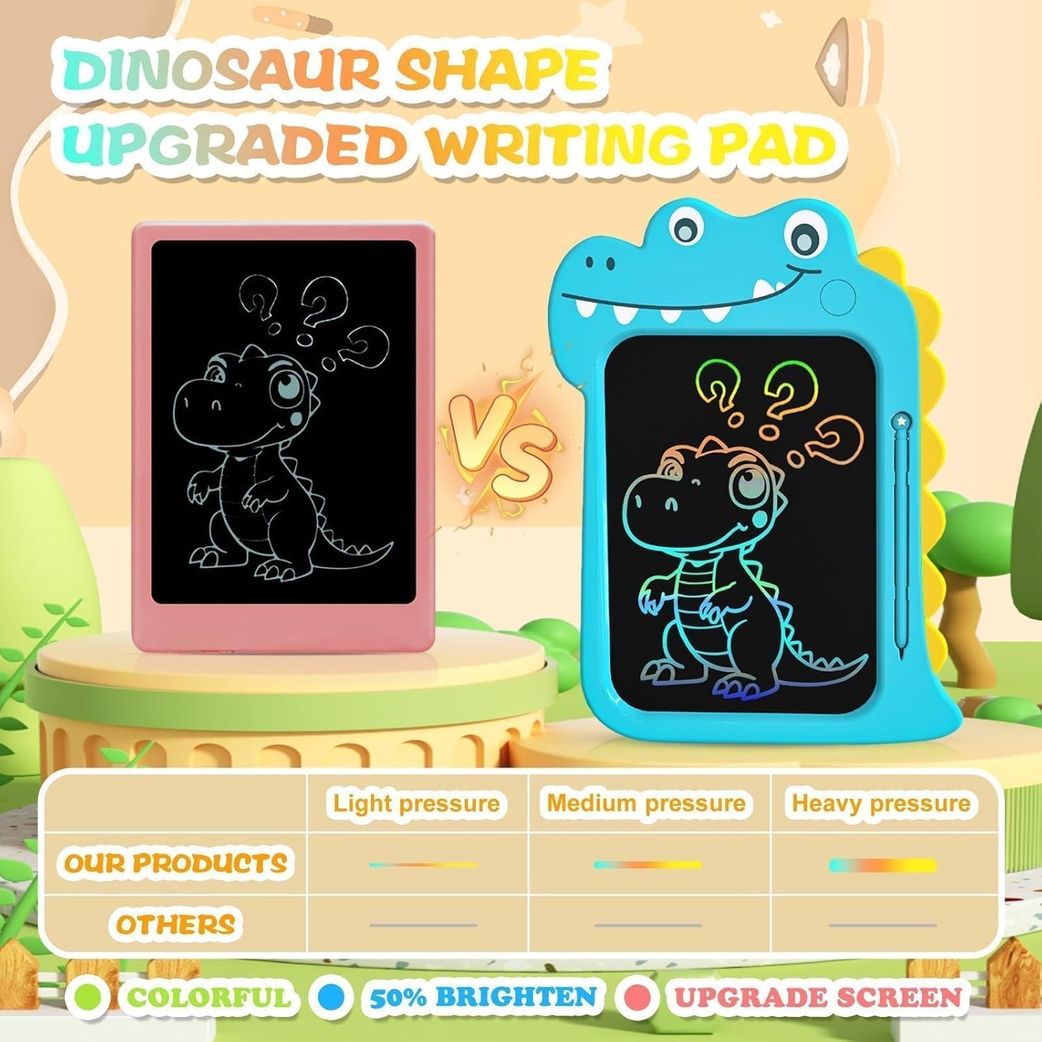 [Fun Dinosaur Drawing Pad]:Kids will love doodling on this vibrant 8.8″ LCD dinosaur writing tablet—perfect for creative play, sketching, and learning letters or numbers without making a mess.