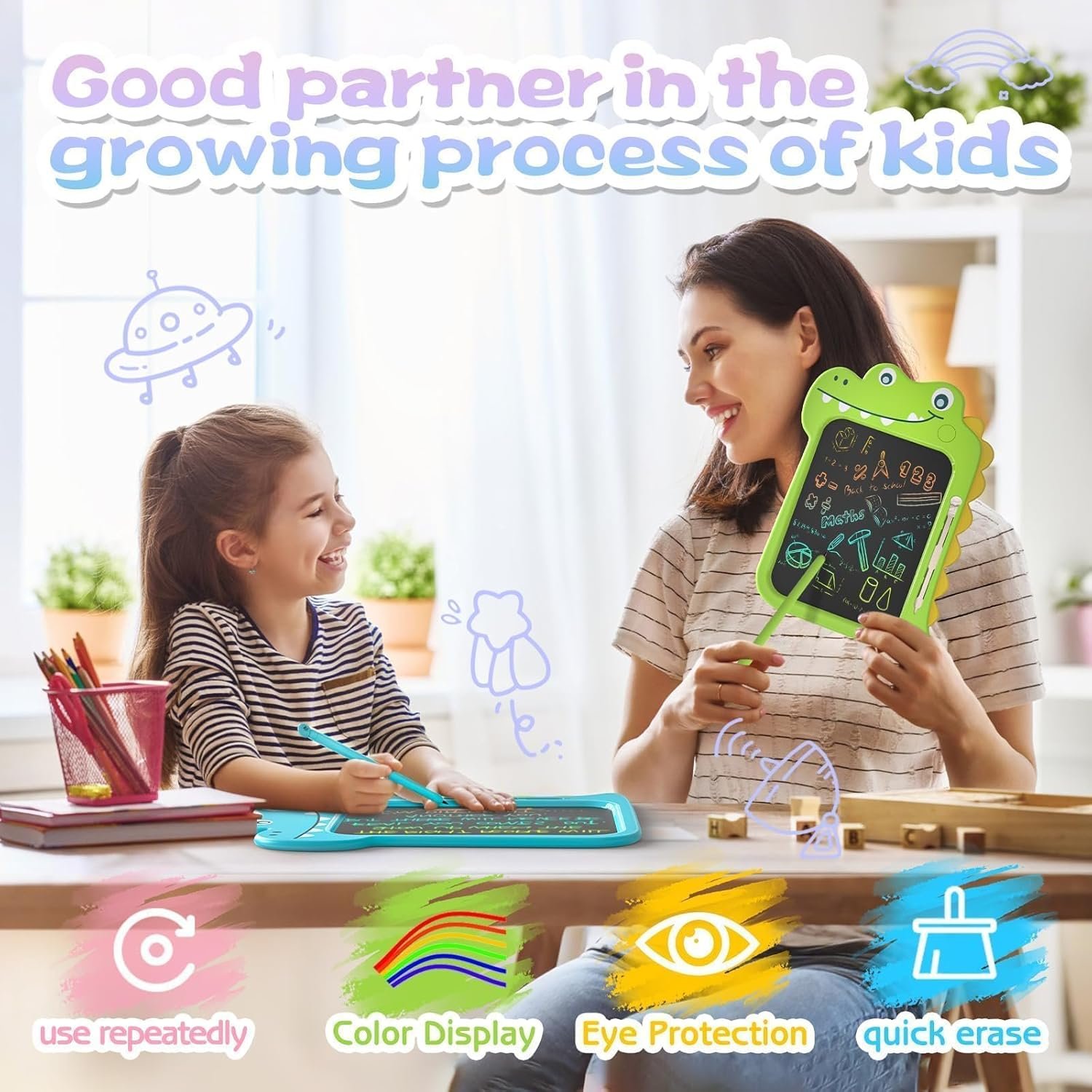 [Paper-Saving & Eye-Friendly]:LCD screen is radiation-free with no blue light—gentle on kids’ eyes. Encourages eco-friendly habits by saving paper and reducing clutter.