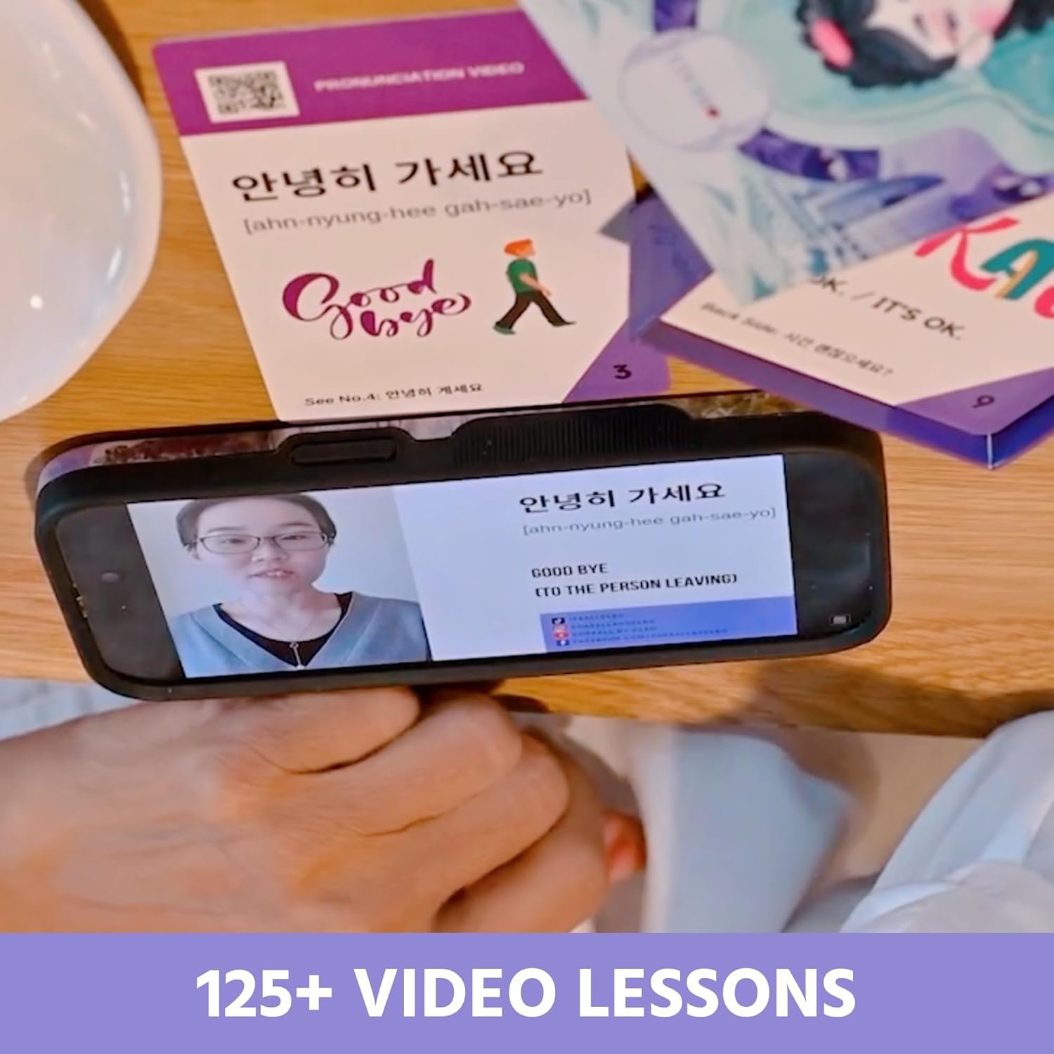 Looking for portable and convenient flashcards to use anywhere, anytime? Look no further than our “COREALL” Survival Korean travel expression flashcards! These flashcards are the perfect choice for those who want to learn Korean effectively. Designed for visual learners, complete beginners, and struggling students, they provide an ideal learning experience. Start with our Hangul interactive cards, which feature a QR code with a video lesson, Romanization, visuals / mnemonics, and color-coded sentence examples. These elements will help you visually learn the Korean expressions. With our flashcards, you can easily and enjoyably learn Korean phrases. They are designed to help you memorize pronunciation, spelling, and the meaning of basic Korean vocabulary. Here are some features you’ll love: Ultra-Premium Quality Convenience & Portability 150+ Quick Video Lessons Perfect for Visual Learners Great Tool for Homeschooling These flashcards are also an ideal present for beginners learning Korean. Whether it’s for your sweetheart, kid, or friend, these vocabulary flashcards make a stunning gift idea. They help improve vocabulary, reading, and writing skills in the Korean language. Furthermore, our flashcards are a fun and engaging learning tool. They are specifically designed to boost student confidence and enhance visual and auditory learning. With their portability, they allow for repetition, which is crucial for effective language learning. They also stimulate imagination and improve memory retention. Whether you use them in a classroom setting or for individual or home study, they are perfect for all learning environments.