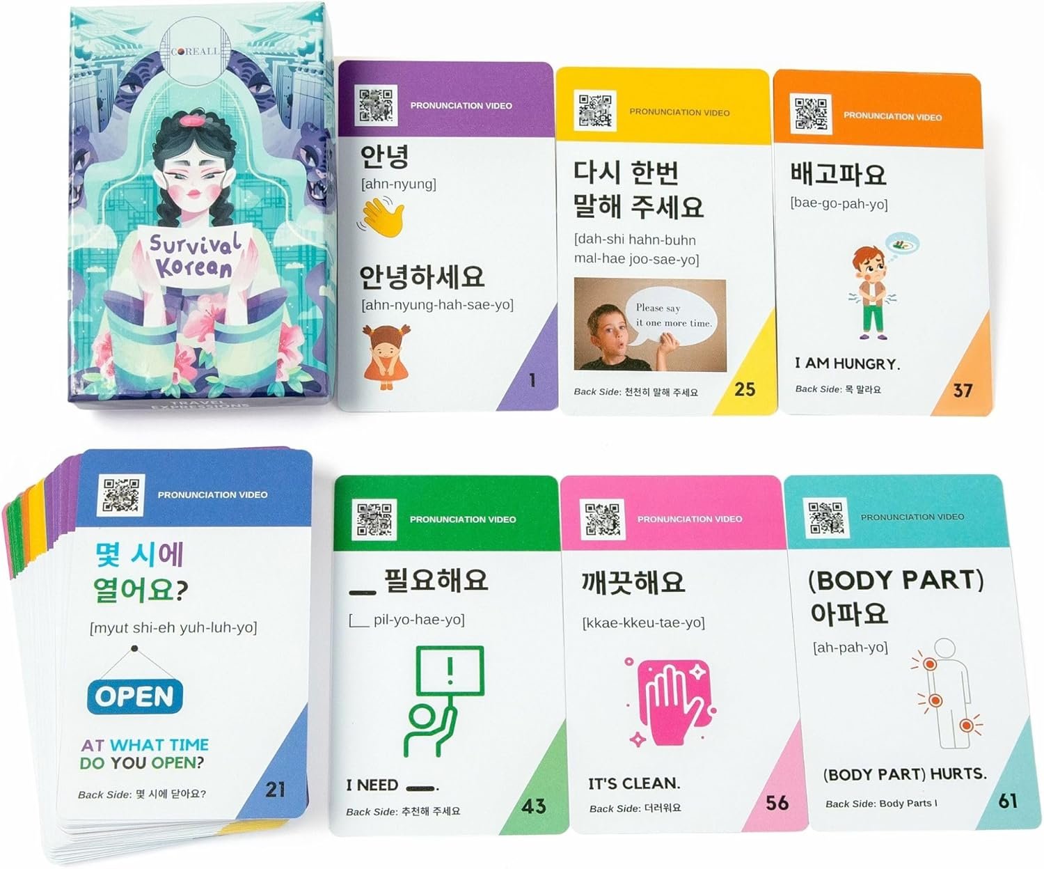 Learn Korean Survival Korean Travel Expression Flash Cards – Korean Gifts Idea for Korean Language Beginners