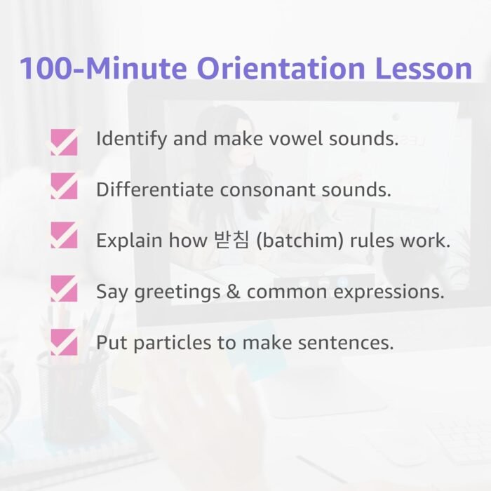 100-Minute Master Orientation Lesson – Want to talk to me in Korean? These Korean flashcards for beginners include a 100-minute video lesson to review Hangul & sentence structures of Korean.