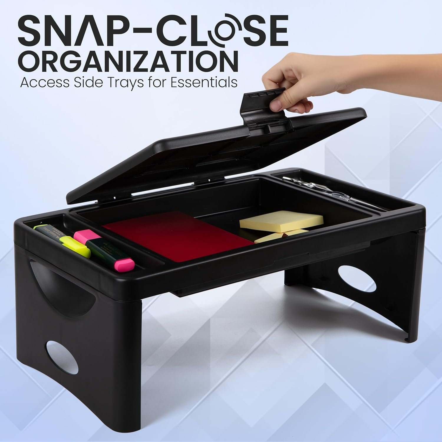 Loddie Doddie Foldable Lap Desk with Storage Pocket – Small Black Travel Desk & Lap Table, Teens, Activities, Breakfast, Gaming