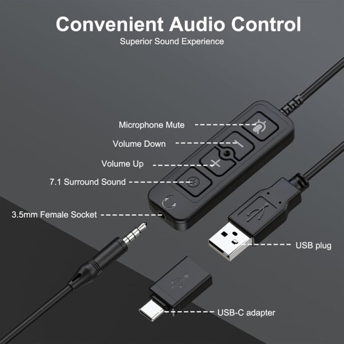 UNLEASH IMMERSIVE AUDIO EXPERIENCE: utilizing advanced USB algorithms and powerful speaker drivers, the cutting-edge USB headset with microphone for PC allows you to effortlessly switch between 6 dynamic sound effects with just a button to enjoy audio versatility. Immerse yourself in 7.1 Surround Sound and Deep Bass whether you’re on phone call, gaming, music or video conference.