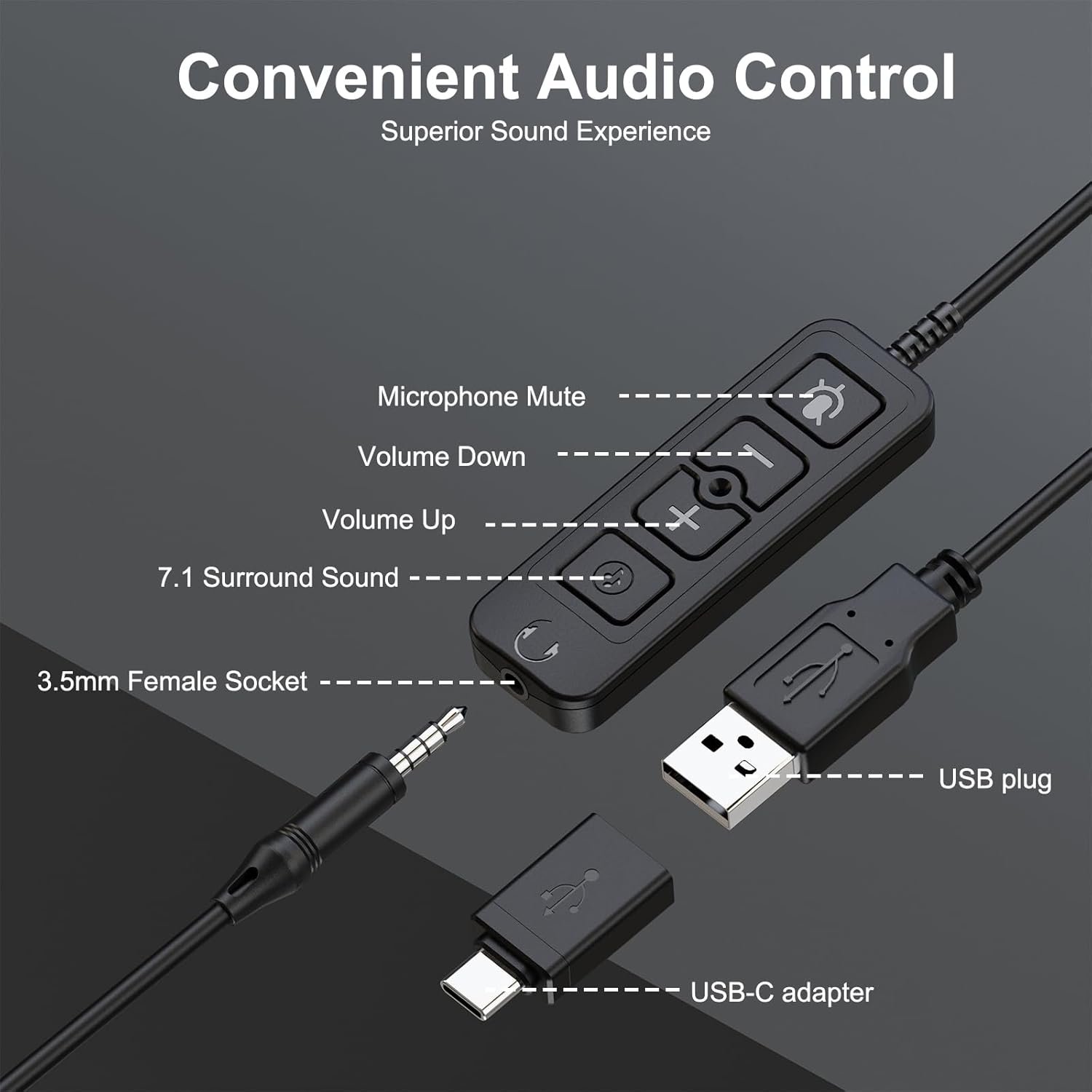 EFFORTLESS AUDIO CONTROL: take charge of your audio experience effortlessly with the wired USB/3.5mm headset. Intuitive control allows you to easily adjust volume and manage playback. The integrated microphone mute function ensures your conversations remain private at a touch of the button.