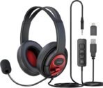 VERSATILE JACKS FOR UNIVERSAL COMPATIBILITY: enjoy the wired headset for computer on multiple platforms with ease. Equipped with 3.5mm, USB A, USB C three interfaces, this noise canceling headset is compatible with Laptop, Mac, Tablet, iPad, Computer, and Mobile Phone. Dive into immersive sound experiences across various devices without limitations.
