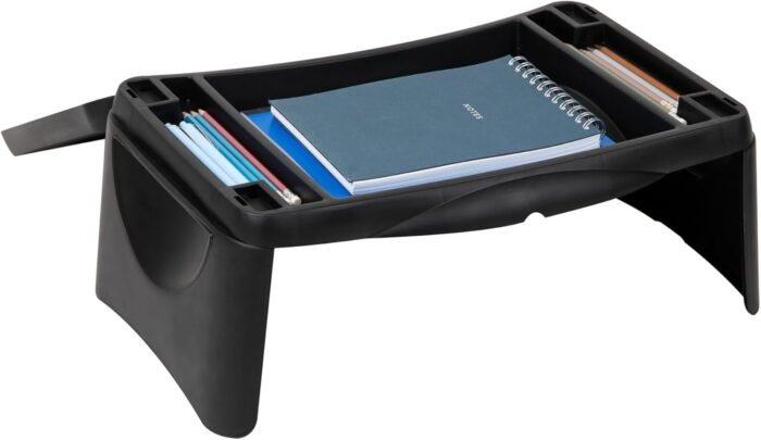 Mind Reader Lap Desk/Laptop Stand, Bed Tray, Folding Legs, Portable, Dorm, Plastic, 18.75″ L x 11.25″ W x 7.25″ H, Black