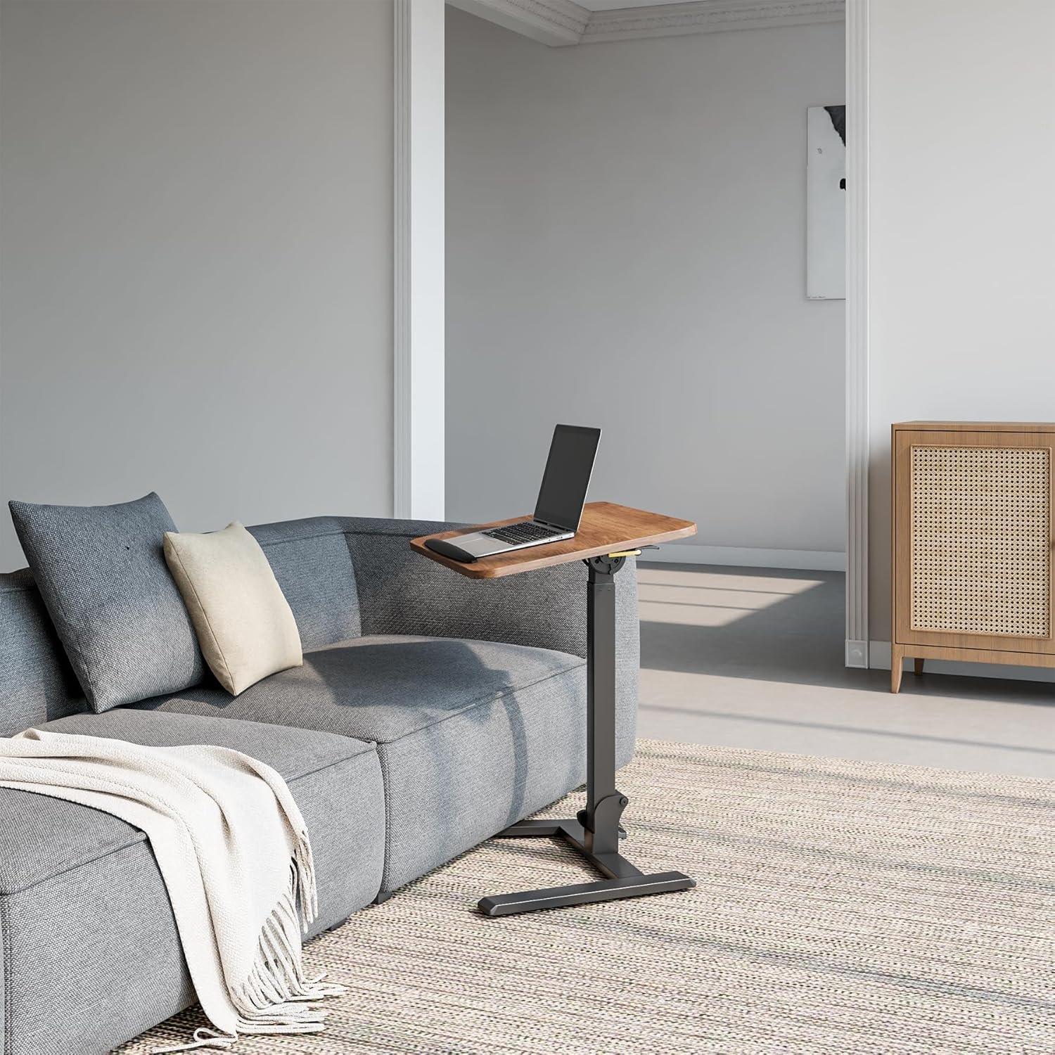 Mobile Folding Desk 25 Inch – No Assembly Sit-Stand Desk,Height Adjustable Rolling Laptop Desk, Space-Saving Portable Desk with Wheels for Home Office Craft & Study, Brown