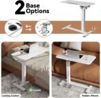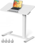 Mobile Standing Desk, Height Adjustable Left/Right Overbed Bedside Table, 90° Tiltable Portable Laptop Desk with Wheels, Foldable Computer Cart for Hospital Home Use, White