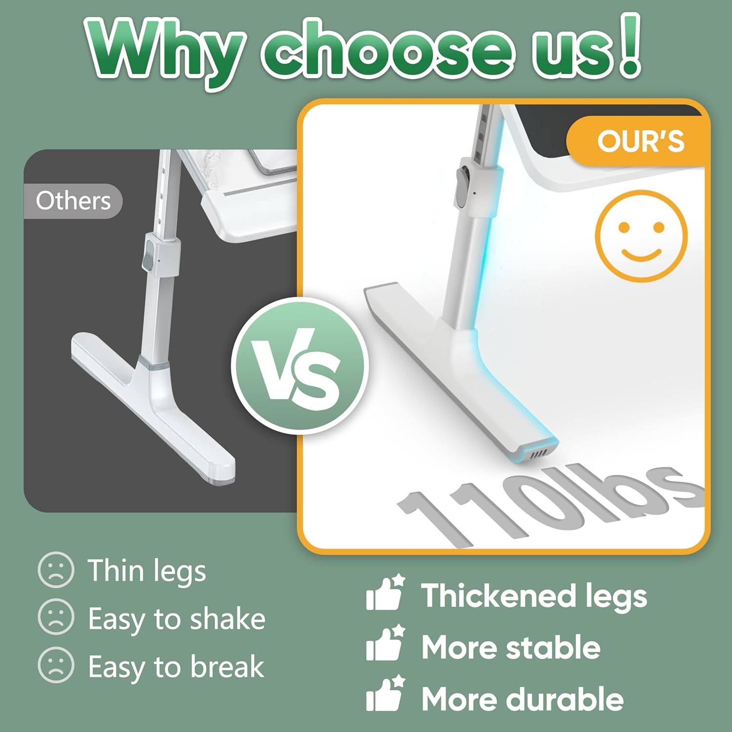【Stable and Sturdy Laptop Bed Desk】: This laptop table panel is made of durable wood, which is long lifespan and not easy to break. The table legs are made of high-quality metal which can hold up to 80 pounds of weight. It won’t collapse and break.