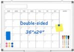 Monthly Calendar Dry Erase Whiteboard for Wall, 36″ x 24″ Double-Sided Calendar White Board, Magnetic Portable Board for Office, Kitchen, School, Home