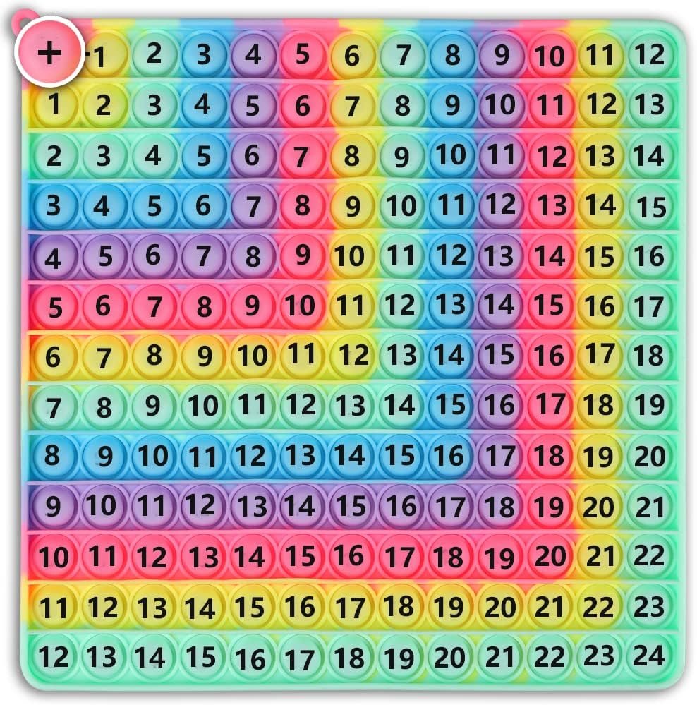 12×12 Multiplication Chart and 1-12 Addition Table Two-Sided Printable Fingertip Bubble Math Toy and Multiplication Game Challenge Toy.Multiplication game addition math toy, this is not only a fun toy to learn 12×12 multiplication and 1-12 addition, but also can create a variety of fun learning methods for school teaching, increase interaction between students, as a classroom reward or holiday gift.