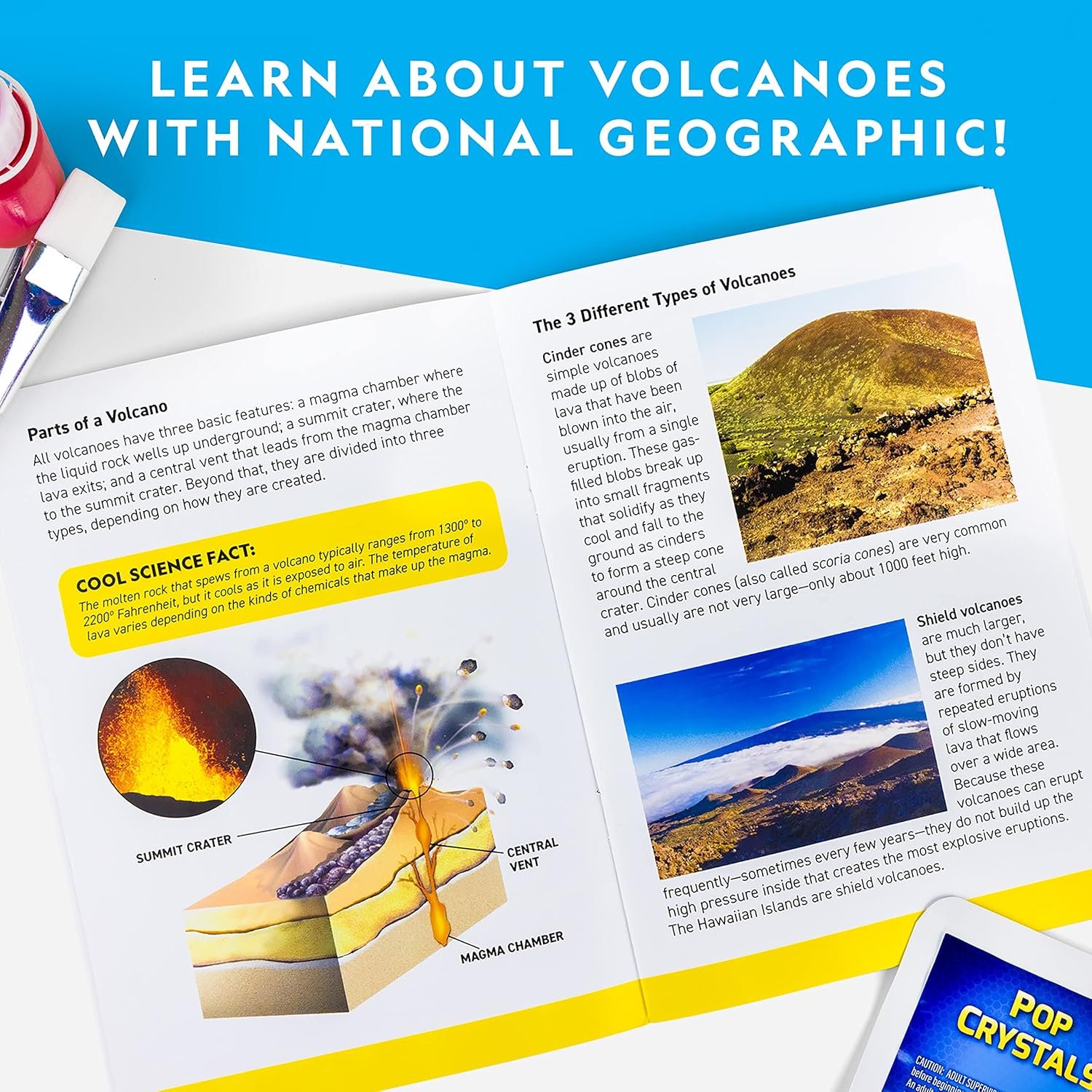 MORE ERUPTIONS, MORE FUN – This kids science kit comes with 3 packets of eruption powder plus pop crystals that add exciting crackling sounds. Instructions for more eruptions from household materials are also included.