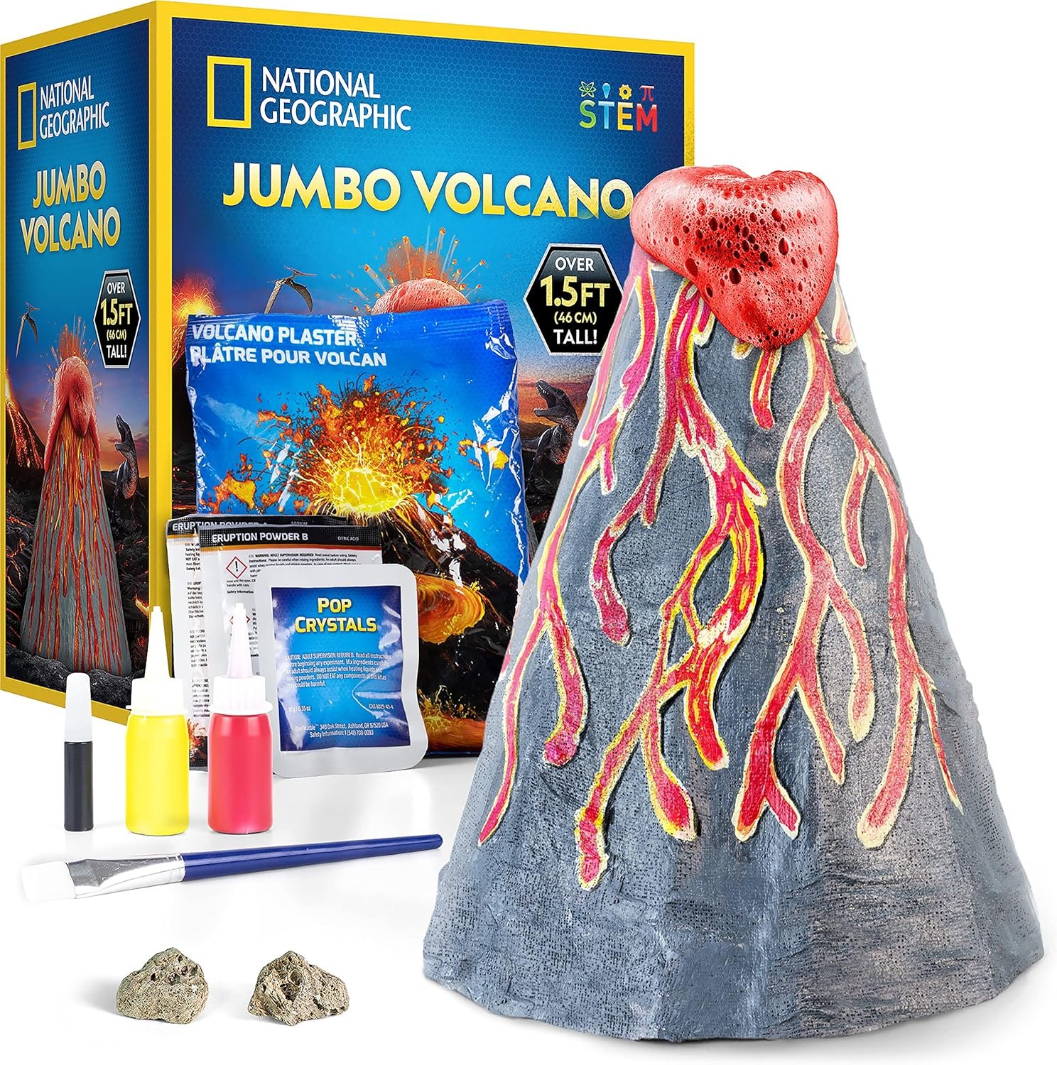 National Geographic Jumbo Volcano Science Kit – 18″ Giant Volcano with Multiple Eruptions, Science Experiments, Science Fair Projects