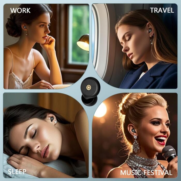 50dB Noise Cancelling Ear Plugs for Sleep & Travel:Premium noise reducing earbuds block ambient sound via triple-layer seal. Ideal airplane travel essentials, concerts, or work focus. Reusable ear plugs for sleeping maintain music clarity while creating quiet zones.