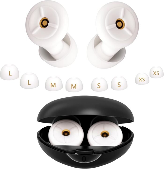 Noise Cancelling Ear Plugs for Sleeping, Travel & Work – 50dB Reusable Silicone Earplugs with 8 Soft Ear Tips, Snore Stopper & Portable Case – Airplane Essentials, Concerts, Focus(White)