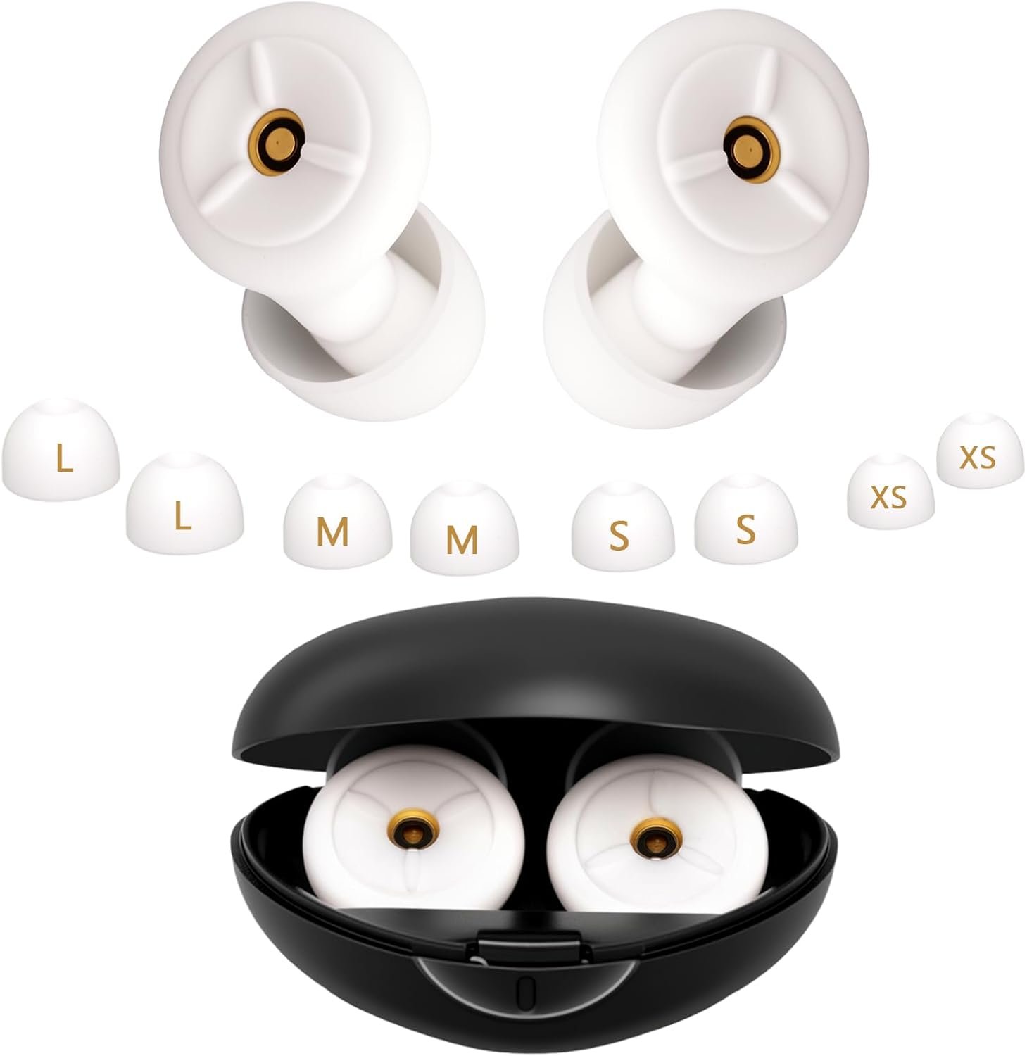 4-Size Ear Plugs for Noise Reduction Comfort:Ultra-soft silicone earplugs with contoured tips (XS-L) adapt to all ears. Sleep-friendly design stays secure during movement. Lightweight travel essentials at 0.1oz/pair, washable for daily protection.