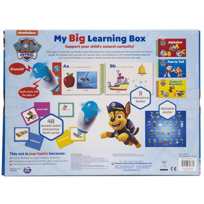 PAW Patrol Chase, Skye, Marshall, and More! – My Big Learning Box Set – Educational Touch & Talk Reader with 3 Interactive Books, 48 Flashcards, and Poster – PI Kids