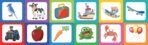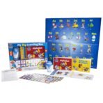 This set includes:3 Interactive books 48 double-sided interactive flash cards Alphabet poster