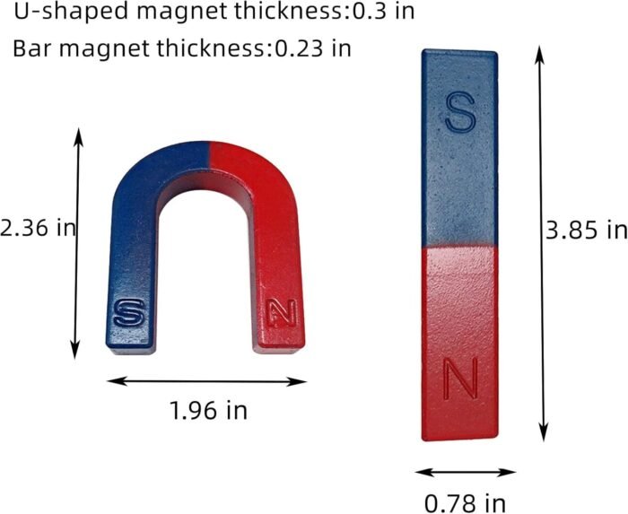 【High Quality】Our U-shaped magnets and bar magnets are a combination of blue and red, and printed with the logo of the north and south poles, which can easily inspire children and improve their color and shape recognition ability. Product includes 3x bar magnets, 2x U-shaped magnets, 1x storage box and 1x manual.