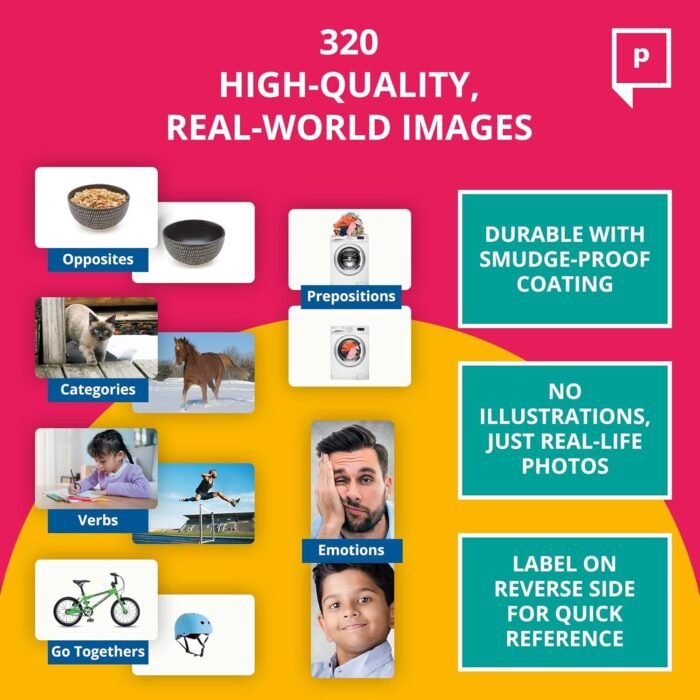 Each set features real-life photos, clear educational goals, and durable, smudge-proof cards—designed with input from professionals to ensure they’re both effective and easy to use.