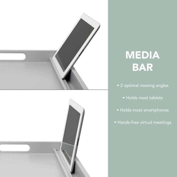 Multipurpose Design: Whether you’re having breakfast in bed or working from home, this tray has what you need. When functioning as a lap desk, use the full-width media bar for phones & tablets. The lowered front edge makes usage comfortable.