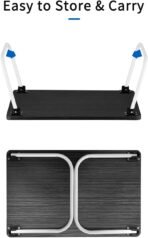 Easy Storage. This bed table tray has foldable legs. Simple to operate, the legs fold under the tray, making it slim enough to slide into a narrow cupboard or closet, display upright on your counter, or slide under the bed. It is very light and easy to carry, allowing you to easily complete work on the bed, sofa or floor.