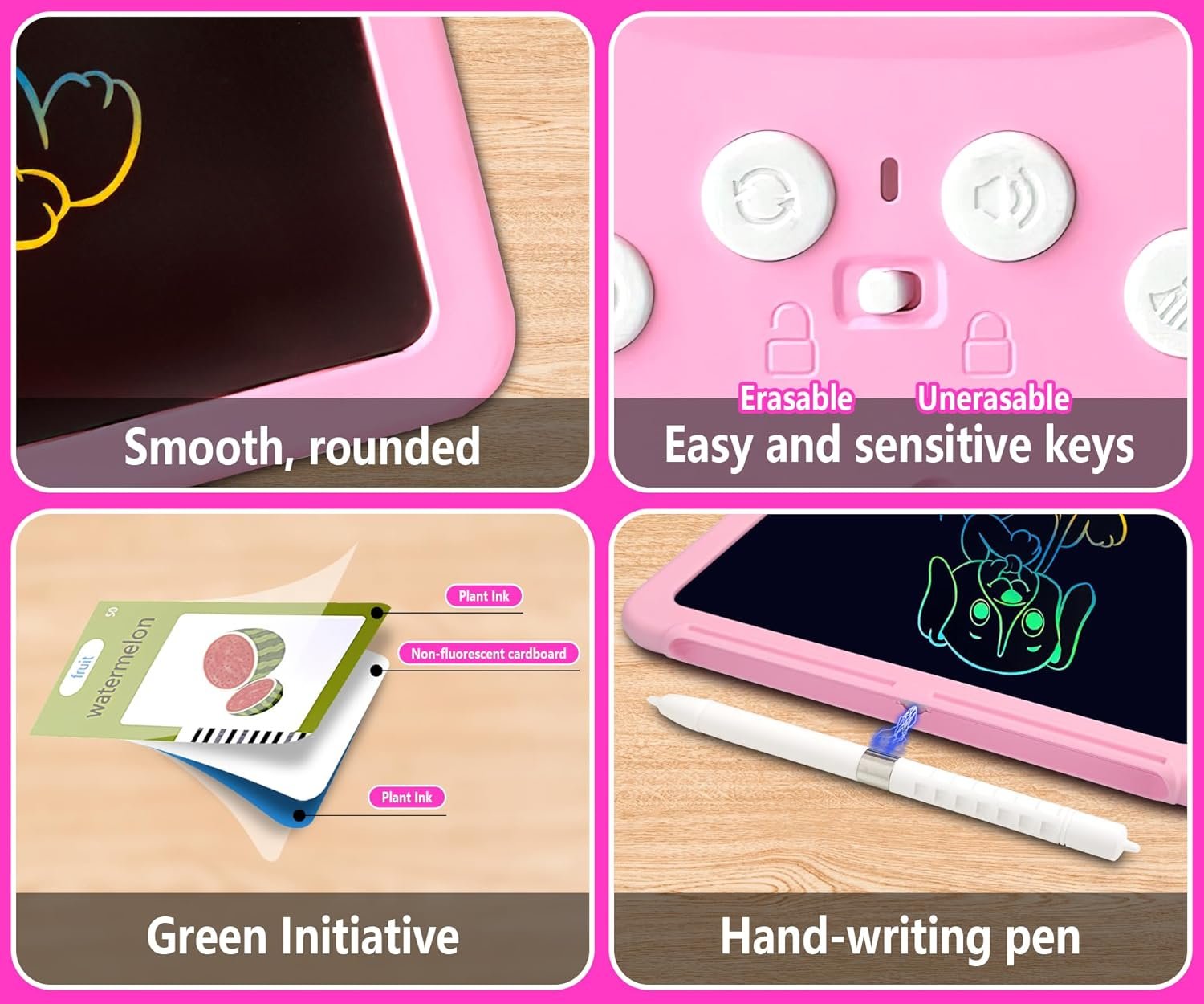 【Durable and Child-Friendly Design】We understand that toddlers can be rough with their toys, so we’ve designed our drawing tablet with talking flashcards to be durable and child-friendly,without glare,without blue light and without radiation. They are crafted from sturdy materials that can withstand frequent use and are drop-resistant. Additionally, they feature rounded edges for enhanced safety during playtime