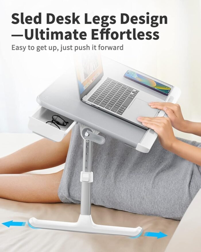 [Easy To Use] Fully assembled adjustable laptop bed table: two auto-lock buttons on each side easily enable quick changes in height, legs can be set to 5 different heights adjustable from 9.4″-12.6″