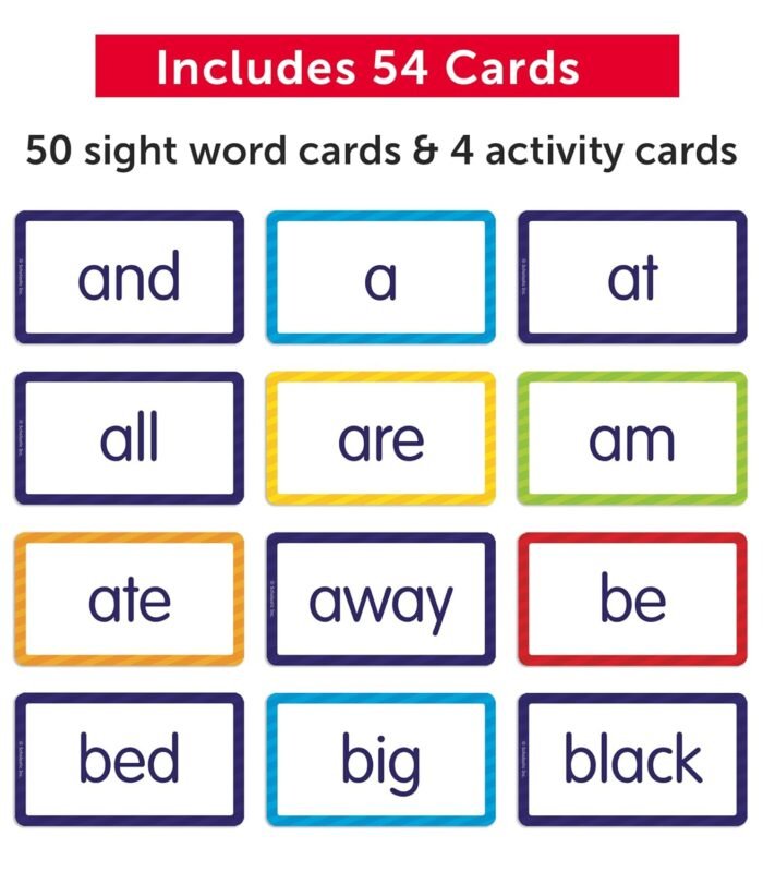 Give your child a head start in reading with these colorful, double-sided Sight Words Flash Cards that feature the first 100 words from the Fry List. An essential tool in building reading fluency! Includes 54 cards: