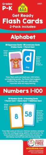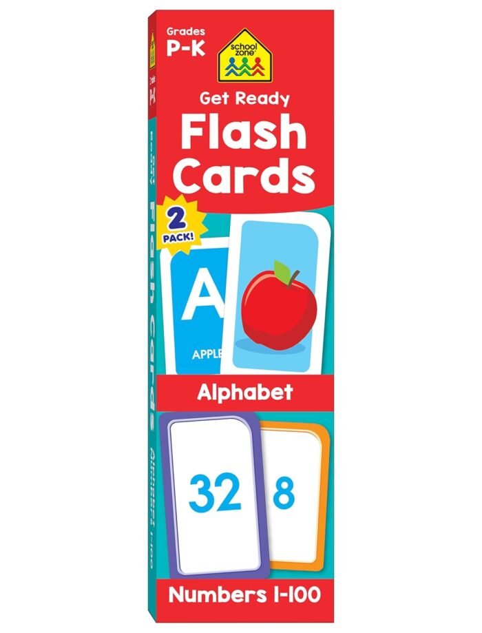 School Zone Get Ready Flash Cards Alphabet & Numbers 2-Pack: 112 Cards, Preschool, Kindergarten, ABC’s, Letters, Beginning Sounds, Numbers 1-100, Numerical Order, Counting, Early Math, Ages 3-5