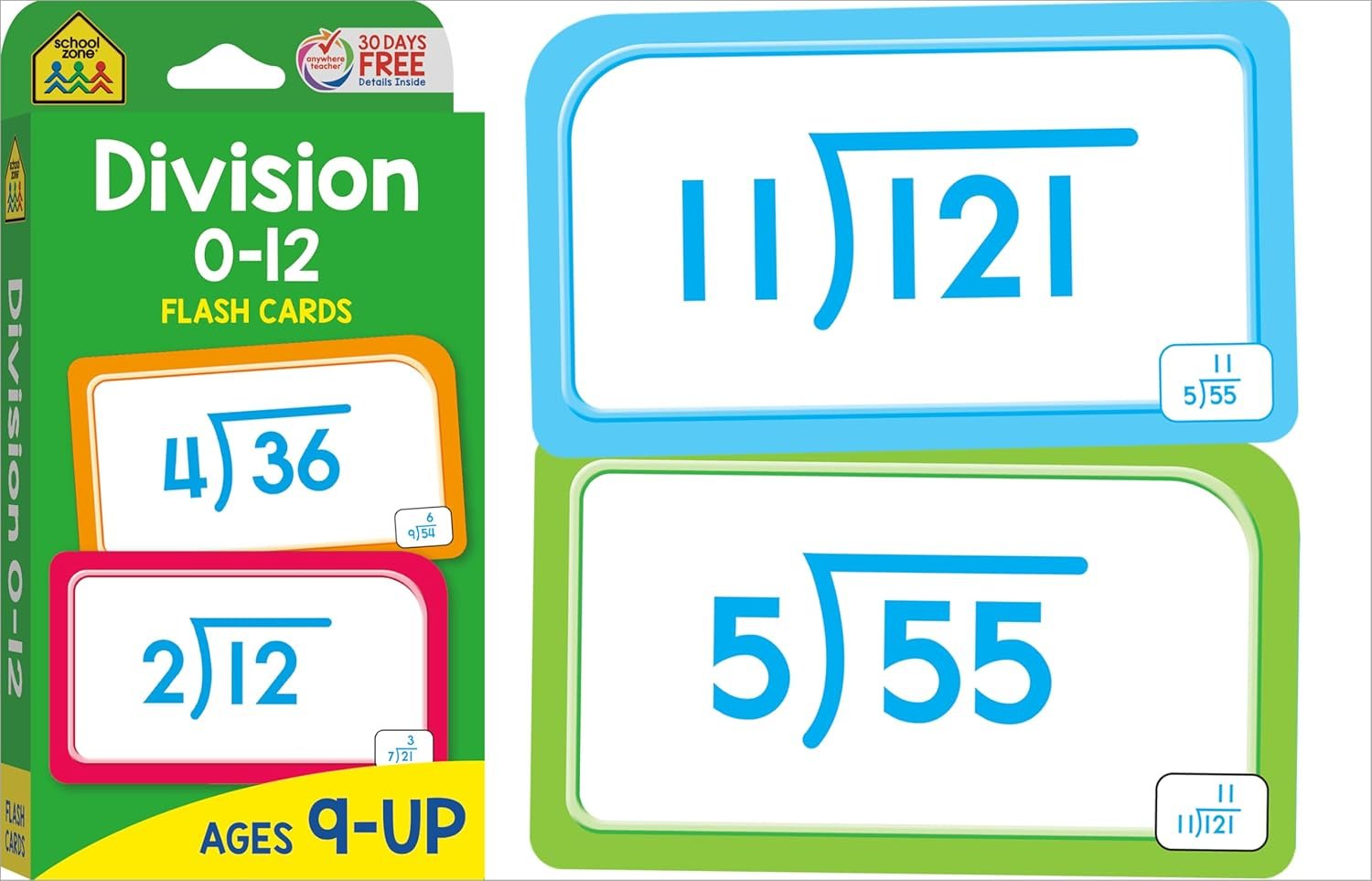 BUILD MATH SKILLS: Help third and fourth graders lock in skills for the next level in math. Multiplication 0-12 Flash Cards show 110 problems that range from 0x0 to 12×12; Division 0-12 Flash Cards include 104 problems that range from 4÷2 to 144÷12. Third graders can practice multiplication and division facts for speed and accuracy. Fourth graders can review and reinforce those skills. MAKE LEARNING FUN: Bold, colorful flash cards make math feel more like play. Use them to self-test or heat up a little competitive action with friends and family. Playing together is a great way to learn verbal communication, cooperation, and patience. Do speed drills, play games, and change it up! PORTABLE & CONVENIENT: Large 3”x 5” double-sided cards have easy-to-sort rounded corners. Find the answer to each problem on the flipside of each card. This multi-set pack is great for home, classroom, or on-the-go learning! PACKAGE INCLUDES: (1) Multiplication 0-12 Flash Card Set (56 cards), (1) Division 0-12 Flash Card Set (56 cards. Each set includes an assortment of game, answer, and parent cards. Set does not include all multiplication and division fact combinations for integers ranging 0-12. DEVELOPED IN THE USA: School Zone learning materials have helped educate three generations of kids, creating lifelong learners, and it all takes place here in the USA. Digital content, flash cards, workbooks, readers, and games—all are crafted through a child’s eyes with teacher guidance and parent approval.