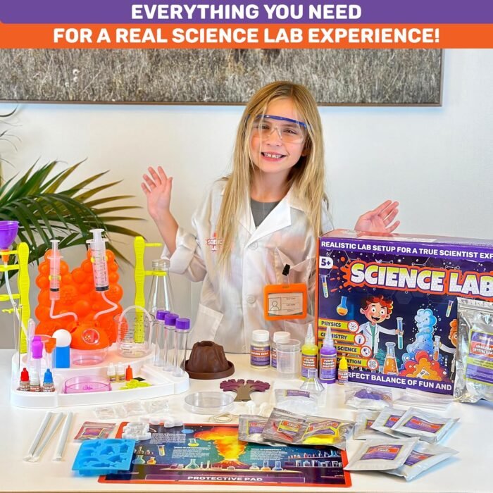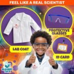 Lab Coat and Scientist Gear: Comes with a lab coat, goggles, and name tag to help kids feel like real scientists.